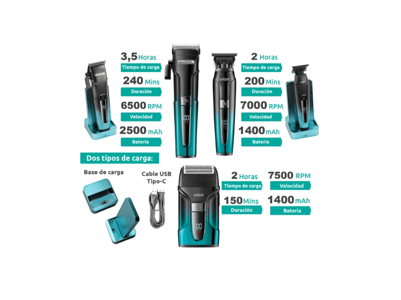 С VGR V-694 получавате три специализирани инструмента, които покриват всички нужди за лична грижа. Независимо дали оформяте брадата, подстригвате косата или се бръснете до съвършенство, този комплект е създаден да отговори на най-високите изисквания.