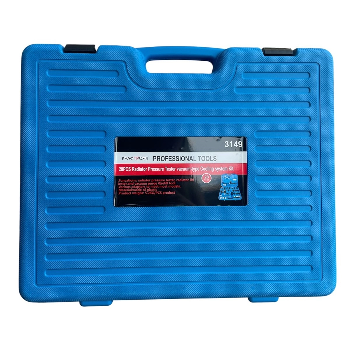 Представяме ви комплект за напомпване и тестване на налягане в охладителна система от 28 части – професионален инструмент за прецизна проверка и поддръжка на автомобилната охладителна система. С този комплект лесно и бързо ще проверите херметичността на радиатора и ще откриете евентуални течове, като осигурите правилната работа на охладителната система.