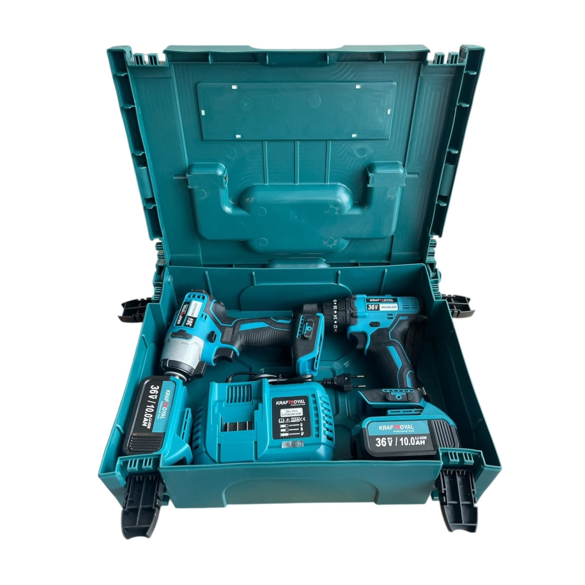 Професионален акумулаторен винтоверт и безчетков импакт KraftRoyal 36V 8Ah в син цвят