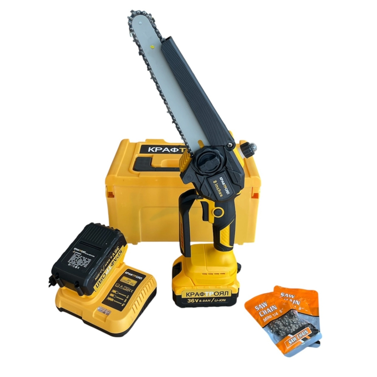 Акумулаторна верижна резачка KraftRoyal 36V с 20 см шина и автоматично смазване