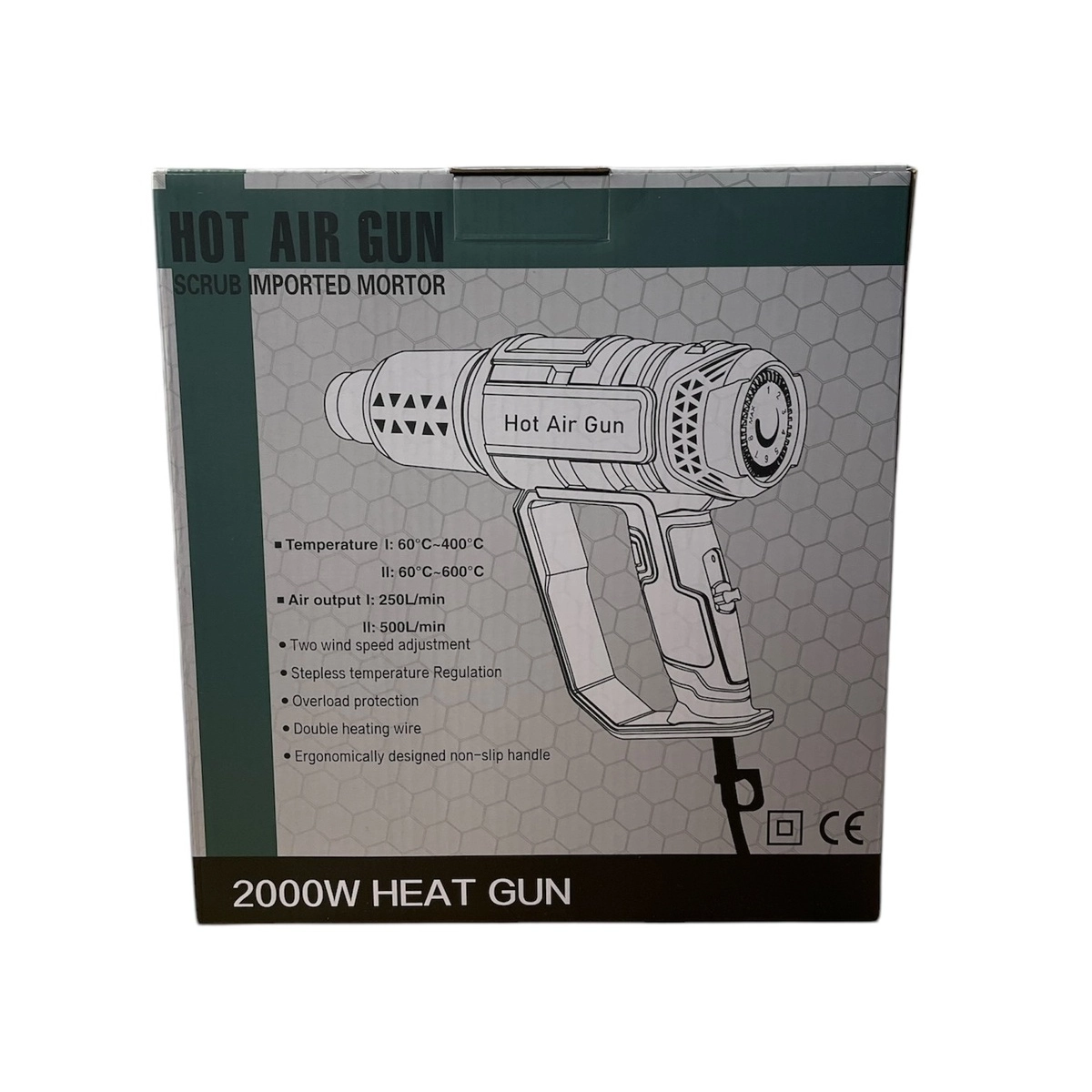 Мощността на пистолета е 2000 вата.