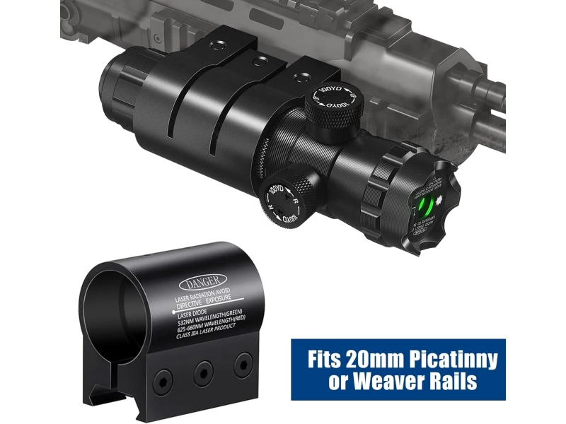 Лазерният прицел е оборудван с 2 монтажни стойки: 25-милиметрoва барел скоба с монтаж за фенер и 21 милиметров релсов държач, който може да държи лазера и да се побира на всеки 21мм ширина на тъкача.
