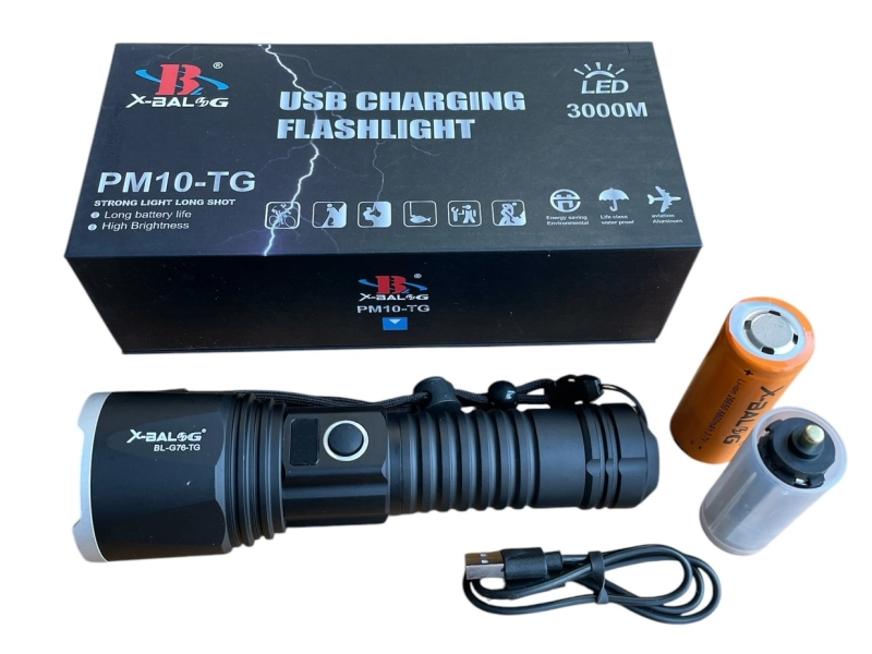 Мощен акумулатен фенер, който носи светлина дори в най-дълбоките кътчета на тъмнината с впечатляващата си мощност и обхват до 3000 метра. Идеален избор за авантюристи, туристи, ловци, рибари или всеки, който търси надежден и мощен източник на светлина.Ослепителна яркост: Голямата мощност и дългият обхват ви позволяват да осветявате дори най-отдалечените цели с лекота.Регулируем фокус: Чрез регулиране на фокусното разстояние можете да фокусирате светлинния лъч до желаната ширина, така че да виждате ясно близки и далечни обекти.Няколко режима: Силна светлина , слаба светлина и мигаща светлина блицАкумулаторна: Благодарение на вградената батерия вече не е нужно да се притеснявате за батериите. Просто свържете предоставеното зарядно устройство и то е готово за употреба отново.Водоустойчивост: Благодарение на водоустойчивостта IPX4, фенерчето е устойчиво на дъжд и пръски вода, така че можете да го използвате при всякакви метеорологични условия.Издръжливост: Корпусът, изработен от алуминиева сплав, е здрав и издръжлив, така че фенерчето ще ви служи дълги години.Технически характеристики:- Дължина на фенера - 20см.- Материал на тялото: Алуминиева сплав- Източник на светлина: LED технология TG LED- Дистанция на осветяване: до 3000м- Режим на превключване: Силна светлина , слаба светлина и мигаща светлина блиц- Батерия: Li-lon 26650 8800 mAh 4.2 V- Водоустойчив: Да- Мащабиране: Да- Метод на зареждане: USB- Може да се използва като преносима батерия и да зареждате вашия телефонКомплекта включва:- 1бр. Акумулаторен фенер- 1бр. Зарядно устройство- 1бр. Батерия 26650