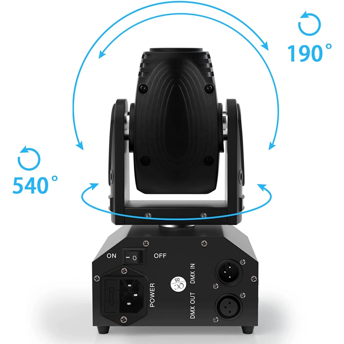 - Движение на главата: Пълни въртящи се движения с 630° панорамно и 235° наклоняване за динамично осветление на сцената.
