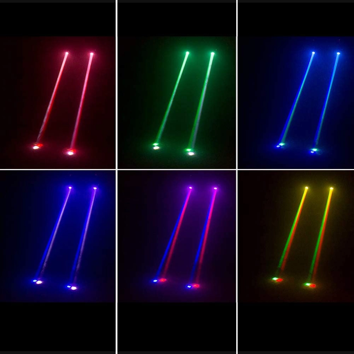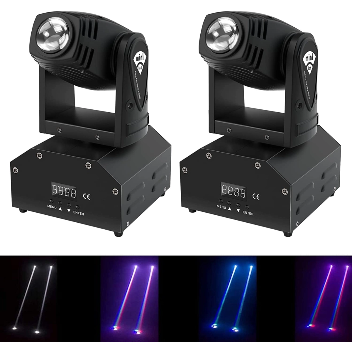 - Автоматични режими: Включва управление с музика, предварително зададени програми и ефекти като Gobo Shake и светкавици с честота 1-20Hz.