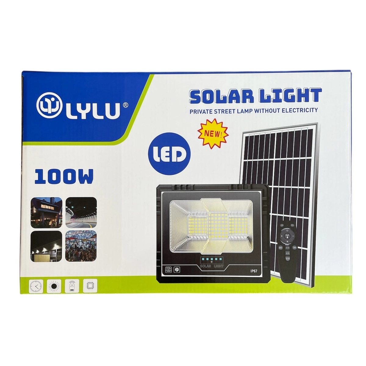 LED прожектор със соларен панел 100W е идеалното решение за осветяване на външни пространства като градини, дворове и паркинги. Този иновативен прожектор използва слънчева енергия, преобразувайки я в мощна и икономична светлина, която осигурява надеждно осветление без нужда от външно захранване.