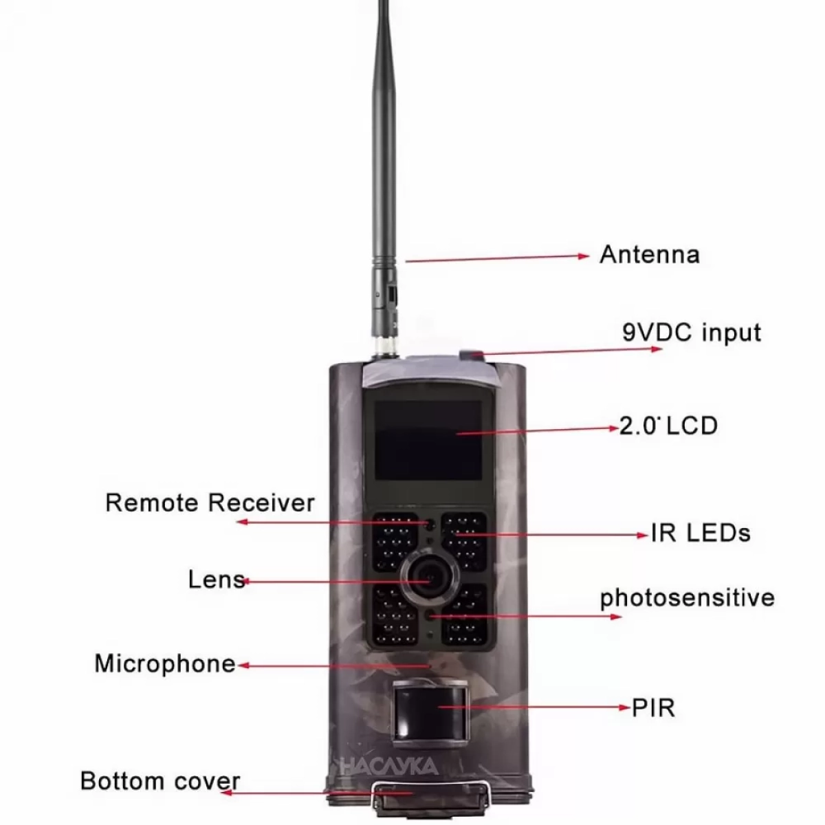 - Поддържа TF карта за съхранение на снимки и видео, както и SIM карта за изпращане на заснетия материал по e-mail или SMS.
