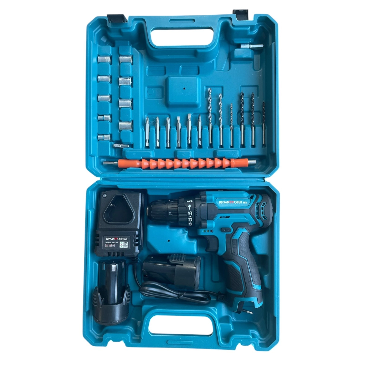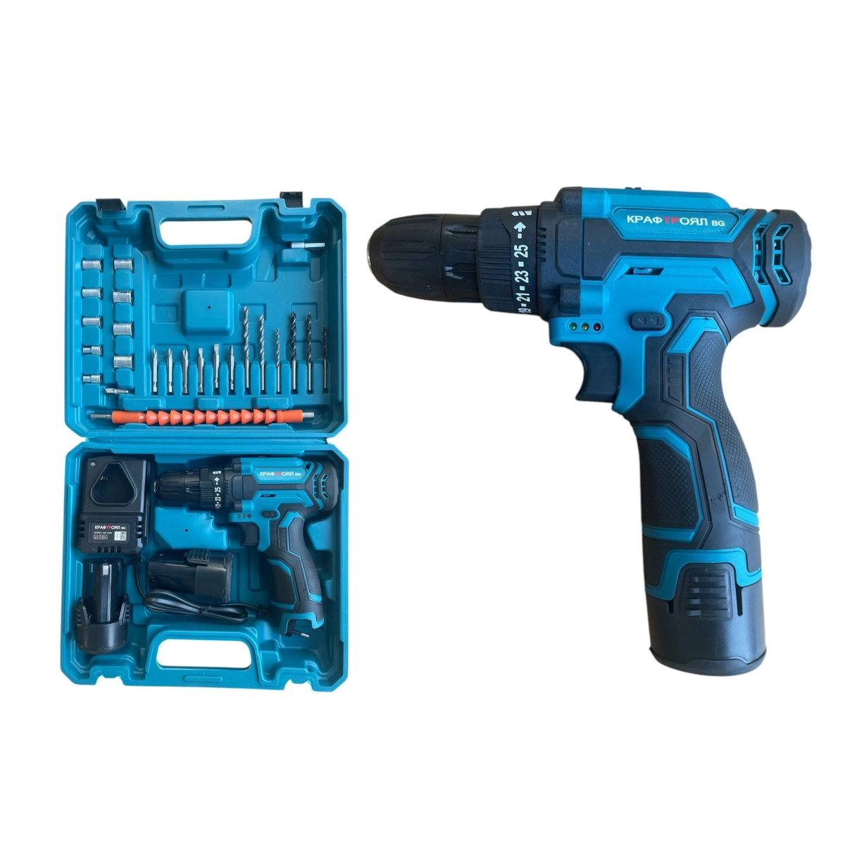 Мини акумулаторният винтоверт KraftRoyal е идеалното решение за всеки, който търси удобен, лек и ефективен инструмент за различни монтажни и ремонтни задачи. С две литиево-йонни батерии с капацитет 6.0 Ah и мощност 24V, този винтоверт осигурява дълготрайна работа и бързо зареждане, което го прави подходящ както за домашна употреба, така и за професионални проекти. Комплектът включва 24 части инструменти, които ще отговорят на всички ваши потребности при завиване и развиване на винтове.