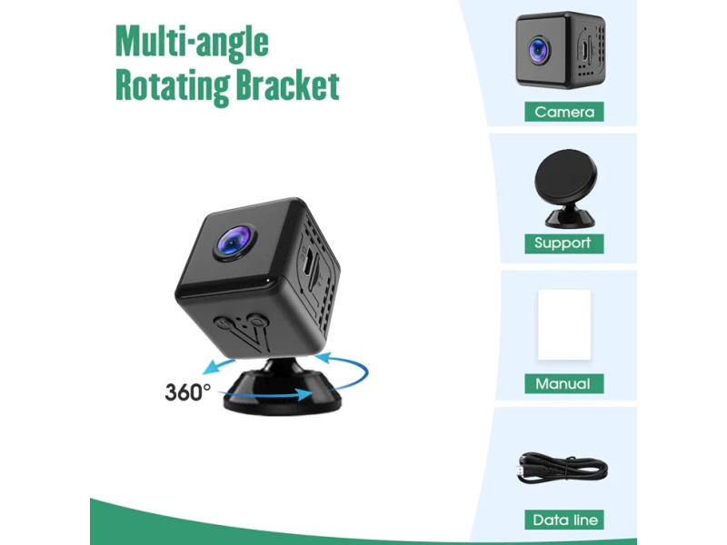 Тази компактна и ефективна мини IP камера е перфектното решение за наблюдение в дома или офиса. Тя предлага лесна настройка и поддържа 1080P резолюция (може да се избере през приложението), което гарантира ясни и детайлни изображения.Основни характеристики: 1 мегапикселова резолюция: Можете да изберете 1080P резолюция през мобилното приложение за по-висока детайлност на видеото. Вградени горещи точки: Камерата може да работи дори без налична мрежа. Поддръжка на мобилни приложения: Работи с приложения за Android и iOS, които можете да изтеглите от Google Play или App Store. Вградена батерия (500mAh): Осигурява около 2 часа работа, което е удобно за краткосрочно наблюдение. Вграден микрофон: Камерата има микрофон, който позволява записване на аудио заедно с видеото. IR нощно виждане: Поддържа нощен режим, който трябва да се включи ръчно, осигурявайки видеонаблюдение дори в тъмни условия. Поддръжка на micro SD карта: Може да съхранява записи на TF карта до 128GB. Приложение: Използвайте приложението iWFCam за контрол и настройка.Спецификации: Ъгъл на наблюдение: 90 градуса. Обхват на наблюдение: 60 градуса. Формат на компресиране: AVI. Максимален капацитет на карта памет: До 128GB. Вграден микрофон: Да. Батерия: Вградена вътрешна батерия за мобилност.Пакетът включва: 1 x Мини камера. 1 x Стойка. 1 x USB кабел. 1 x Ръководство за потребителя.Забележка: Леките отклонения в размера могат да се дължат на ръчно измерване. Цветът на камерата може да варира в зависимост от фотографските условия и настройките на дисплея.
