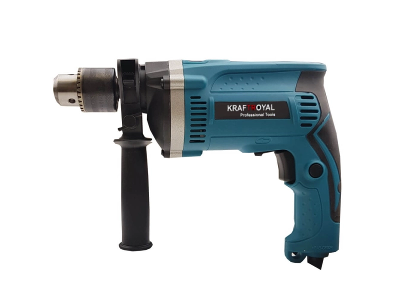 Ударната бормашина с плавно регулиране на KrafT Royal е оборудвана с 1400W мотор. Този професионален инструмент с компактен дизайн е удобен при работа на труднодостъпни мест. Също така цялата конструкция е със сачмени лагери, което означава, че бормашината ще ви служи дълго. Лесно се превключва между пробиване без и със удар. Оборудвана е с патронник със зъбен венец, 13 мм, допълнителна ръкохватка и дълбочинен ограничител.