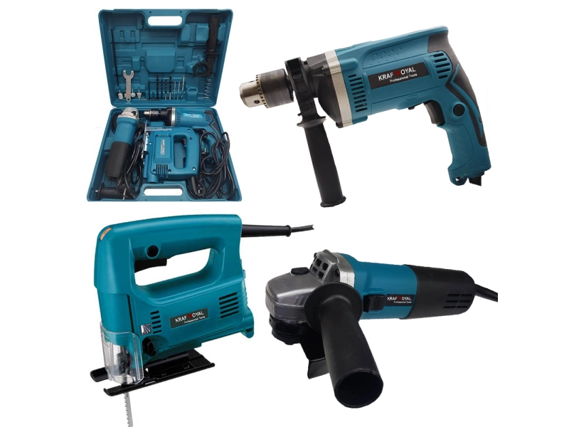 Практичен 3в1 набор от инструменти KraftRoyal с ъглошлайф, бормашина и зеге. Идеален за всякакви задачи. Разгледай и поръчай!