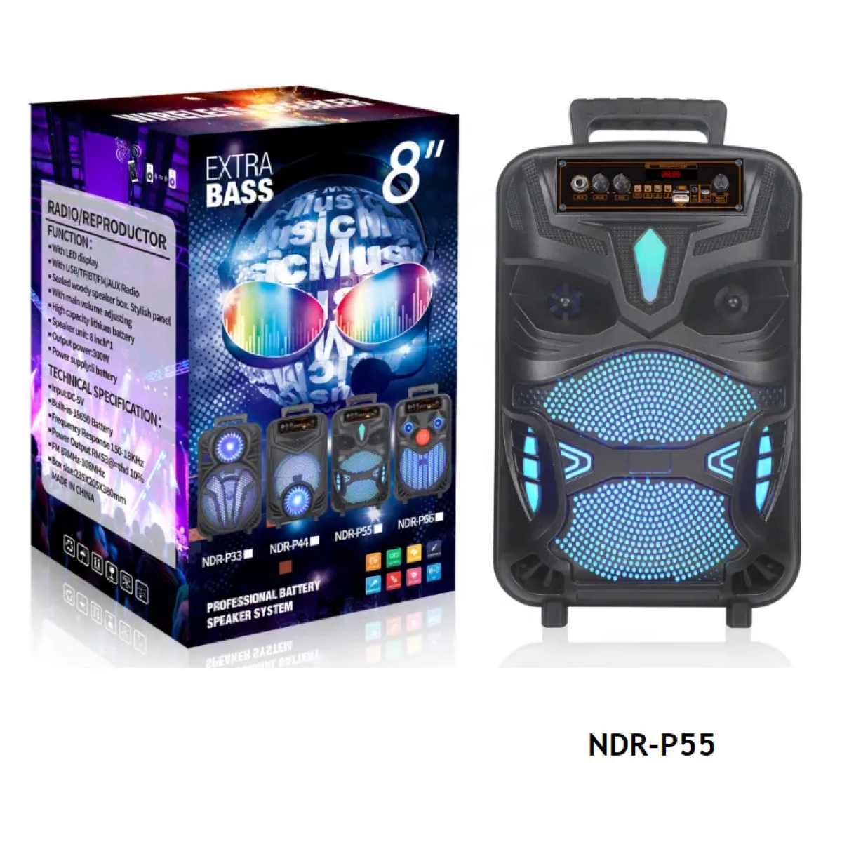 Мощна караоке тонколона NDR-P55 с 8 инча говорител, Bluetooth връзка и микрофон. Идеална за купони. Поръчай!