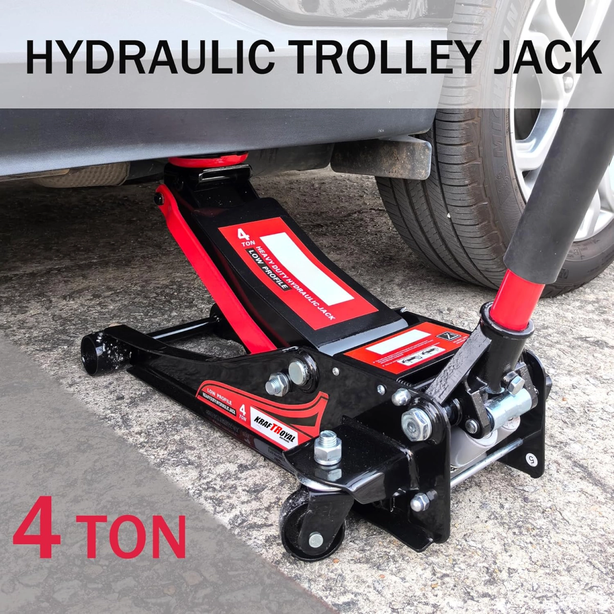 Здрав нископрофилен крик KraftRoyal с капацитет 4 тона и двойна помпа за лесно повдигане. Поръчай с бърза доставка!