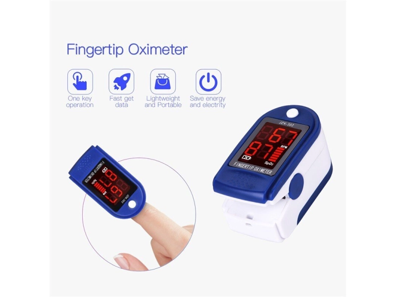 Поставя се на пръста и бързо измерва пулса и нивото на кислород в кръвта.