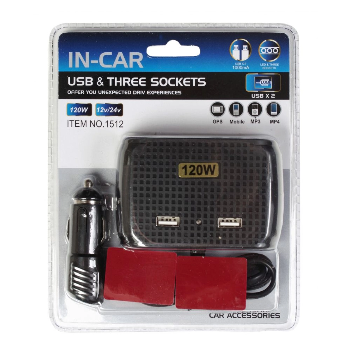 Купи разклонител Olesson 1512 с 3 гнезда и 2 USB порта за автомобил. Идеален за зареждане на няколко устройства едновременно. Поръчай сега!