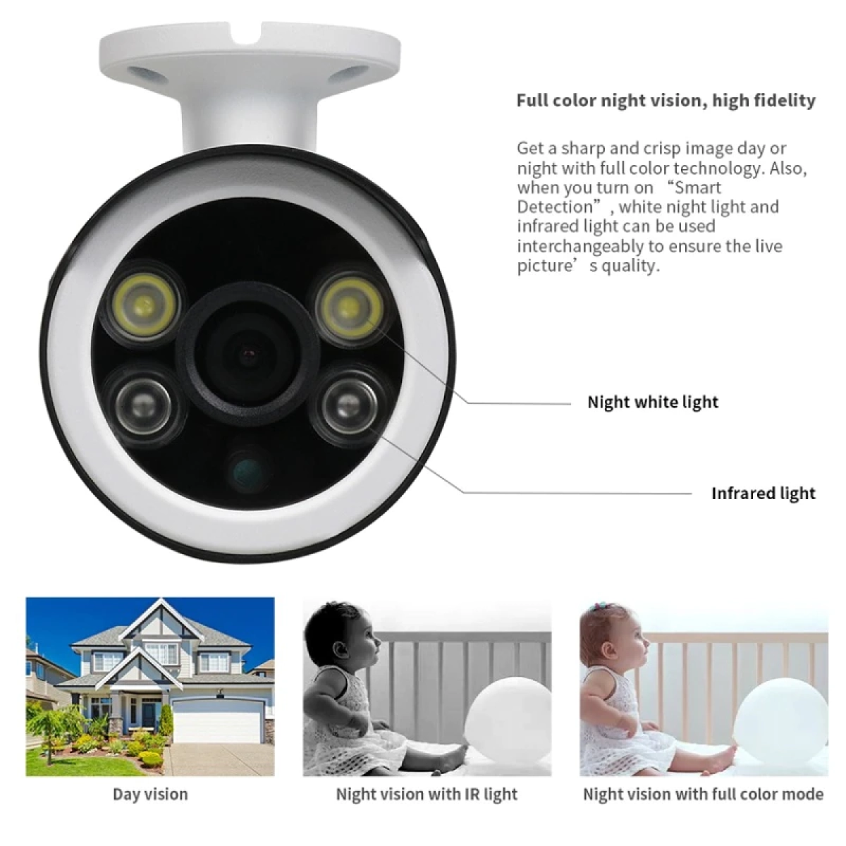 - Вградени 4 инфрачервени светодиода за нощно виждане до 10 метра, осигуряващи ясна картина дори при пълна тъмнина.