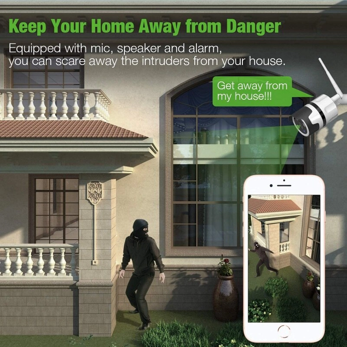 - Двупосочно аудио за комуникация с посетители или охрана директно от мобилното ви устройство.