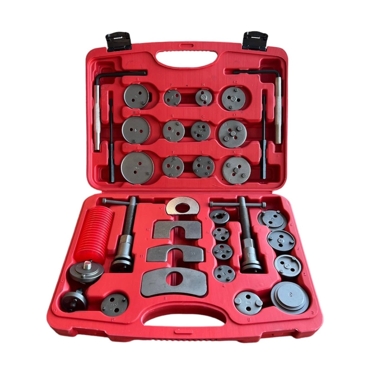 Този комплект е предназначен специално за професионална и аматьорска поддръжка на спирачната система на автомобилите. С него лесно и бързо се извършва нулиране на спирачните бутала, смяна на накладки и регулиране на спирачните механизми. Идеален е за работилници, автосервизи и домашна употреба, осигурявайки надеждност и прецизност при всяка интервенция.