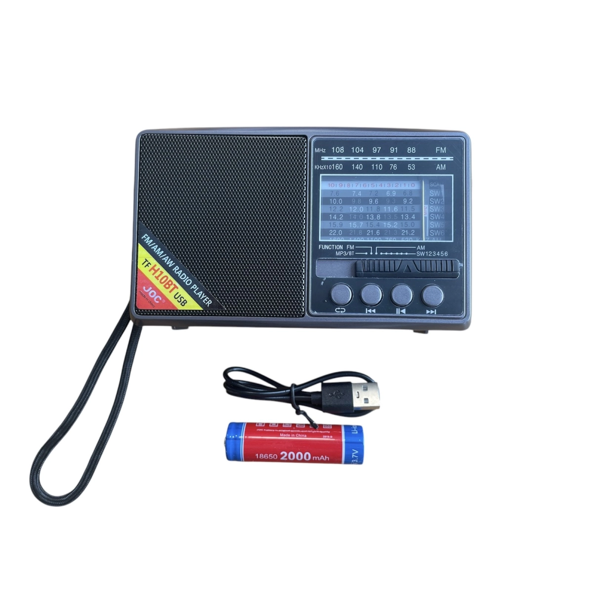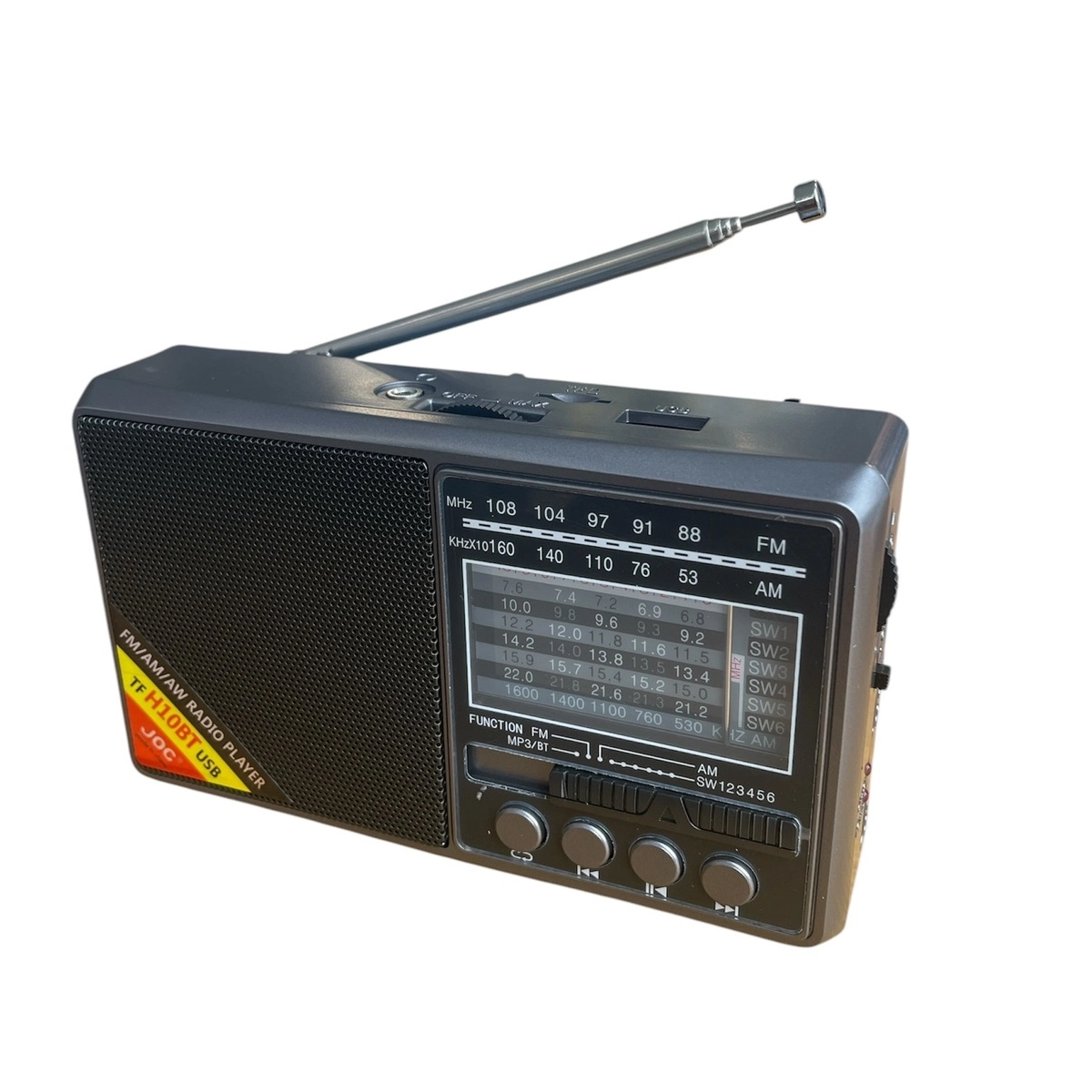 Купи портативно радио JOC H10BT с Bluetooth, FM, MP3 плеър, USB и SD слот. Отлично качество на звука и удобна функционалност.