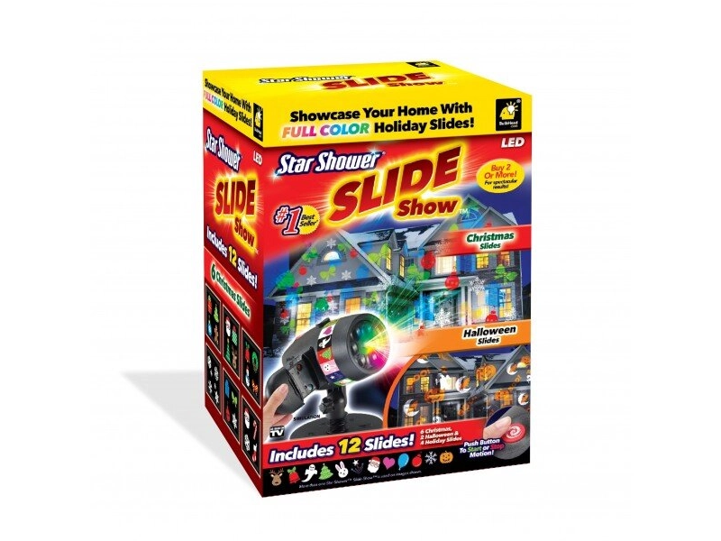 Star Shower Slide Show е уникален светещ прожектор, който ще преобрази вашия дом и ще го направи истински празничен. Подходящ за вътрешна и външна употреба, той е перфектен за Коледа, Хелоуин, Свети Валентин и много други поводи!