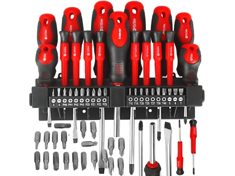 Комплектът съдържа 37 броя прецизни отвертки с магнитни битове.