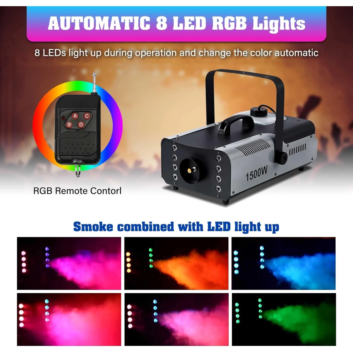 Този модел е проектиран специално за създаване на драматични ефекти чрез гъст дим и цветна LED светлина. Използва се широко в диско клубове, концертни зали, театрални постановки, сватбени тържества и други събития, където е важно да се подчертае атмосферата и да се създаде по-въздействащо усещане за публиката. Димът подобрява видимостта на светлинните лъчи и лазерите, което прави всяко шоу по-запомнящо се.
