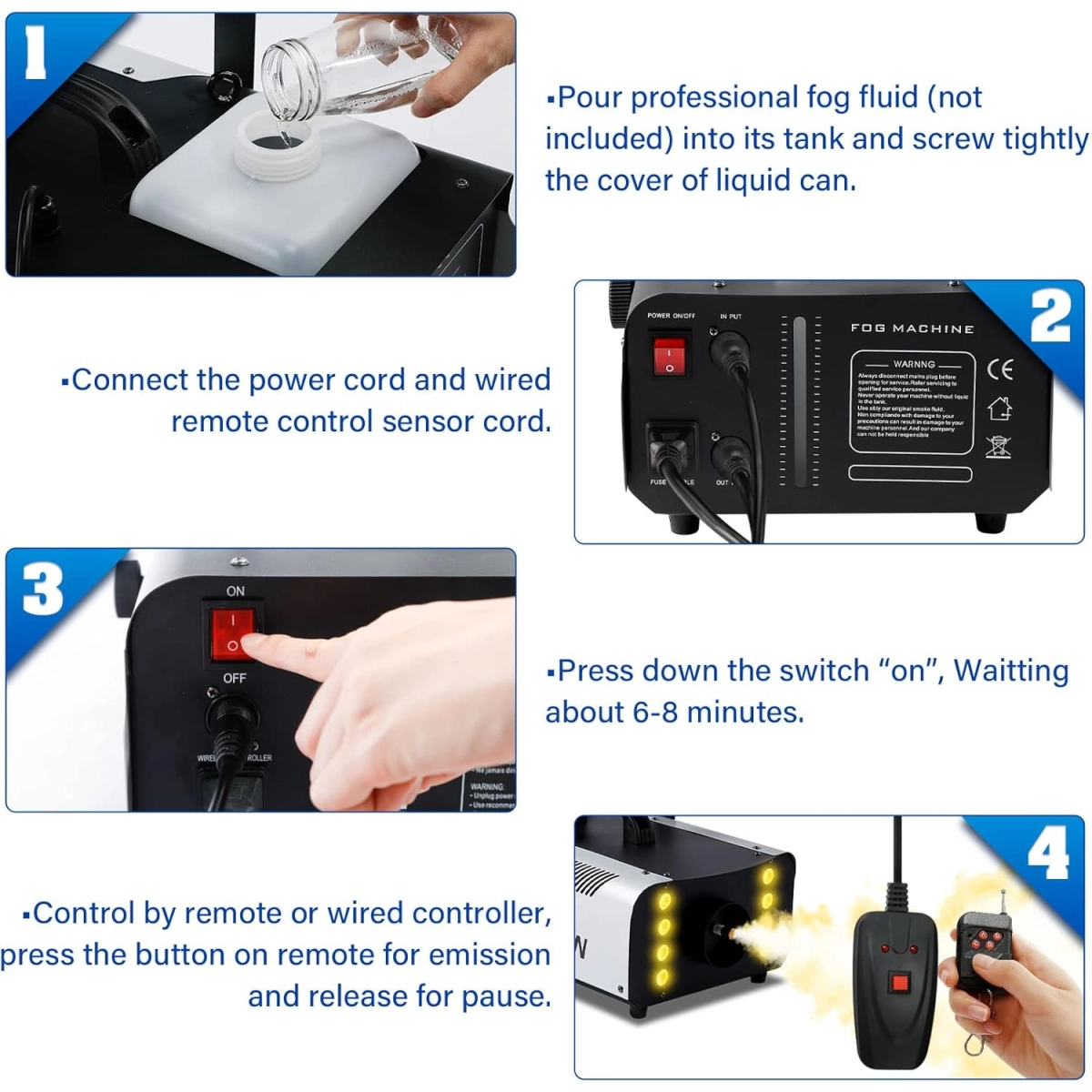 - Мощност от 1500W, осигуряваща силен и плътен дим за максимален визуален ефект