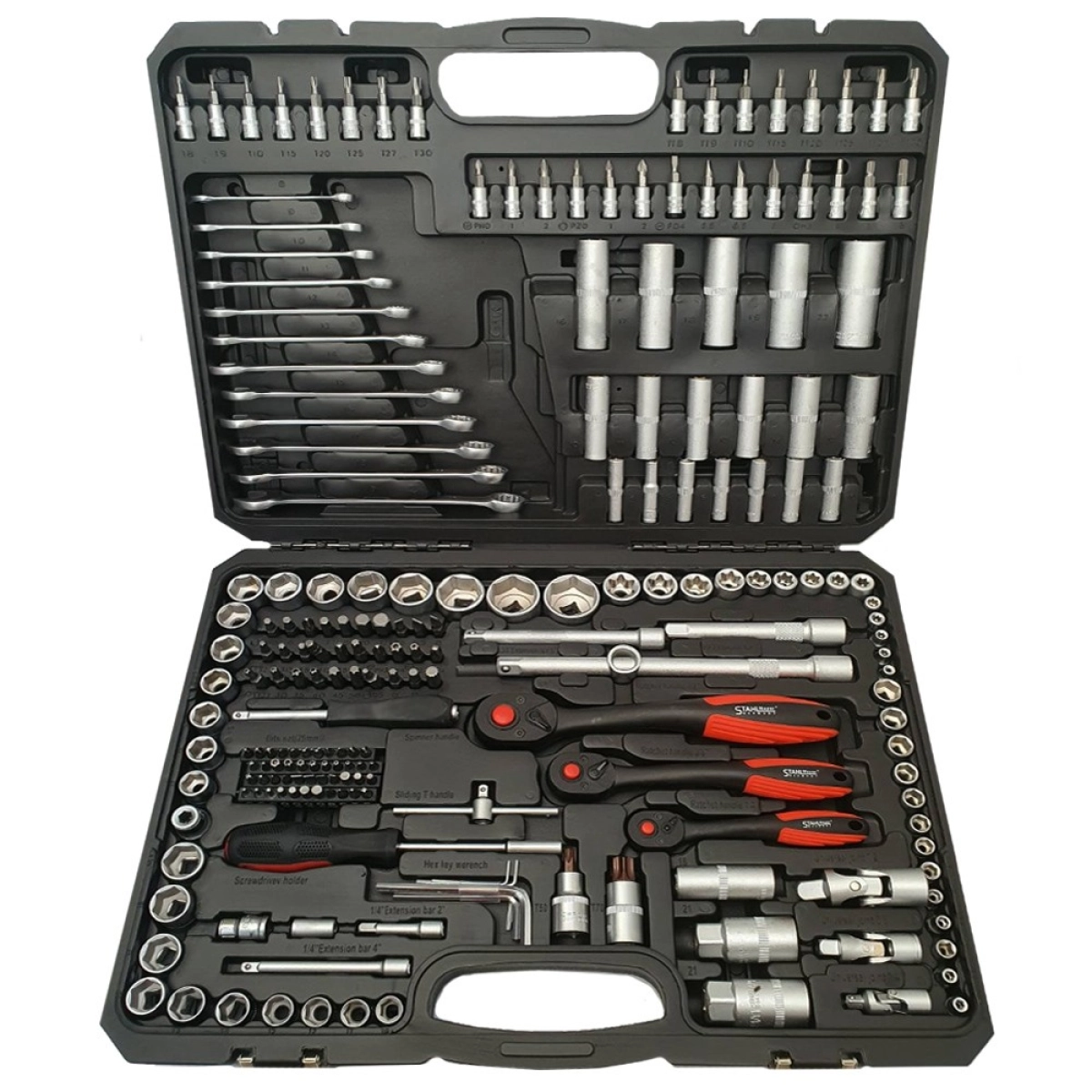 Този комплект инструменти за автосервизи е предназначен за професионалисти, които се занимават с ремонт и поддръжка на автомобили. Независимо дали става дума за смяна на двигателни компоненти, обслужване на спирачни системи или монтаж на електрически части, инструментите в комплекта осигуряват надеждност и прецизност. Подходящ е както за сервизни центрове, така и за механици, които търсят универсален и качествен набор от инструменти за ежедневна употреба.