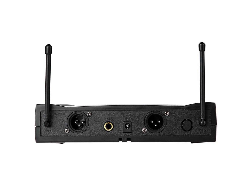 • Професионални безжични микрофони• Захранване на микрофоните: 2 бр. х 9V (включени са в комплекта)• Бутони на микрофона: On/Off, светлинна индикация• Аудио изход на приемника: 5.5 мм моно жак (кабела е включен в комплекта)• Захранване на приемника: 220V• Светлинни индикатори на приемника за: on/off,mic• Микрофоните работят независимо един от друг по едно и също време на различни честоти: 252.1 MHz и 214.1 MHz, без смущения помежду им• Вградена защита от външни шумове• Възможност за усилване и намаляване на звука от микрофоните чрез приемника• Обхват: до 100 м.Комплекта включва : 2 бр. микрофони,1 бр. приемник,1 бр. аудио кабел,2 бр. 9V батерии