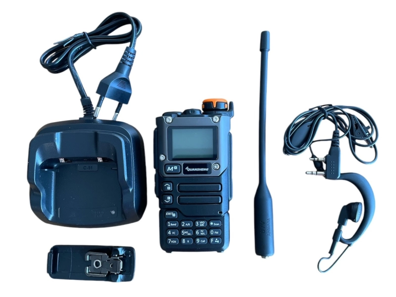 Два основни честотни диапазона (136-173.9975MHz) и (400-469.9975MHz) осигуряват надеждна комуникация в гъсти гори или в закрити помещения. Преслушване на авиационни и радио честоти AM/FM. Възможност на избор на 200 канала и DTMF кодиране, което позволява да изпратите съобщение на конкретен приемник без останалите в групата да чуят.Имате възможност за избор на изходящата мощност в зависимост от периметъра който искате да обхванете. Може да изберете по-ниска мощност, с което ще спестите енергия.Радиостанция QUANSHENG UV-K5 е снабдена с презареждаема батерия 1600mah, като зависимост от необходимата дистанция на работа, мощността на станцията може да бъде намалена, с което се намаля и консумацията на енергия.Изработена от метал и здрава устойчива пластмаса с еластична гумирана антена, радиостанцията позволява работа в сурови външни атмосферни условия без да е необходимо пазане от пречупване на антената.Характеристики:Честоти: VHF (136-173.9975MHz), UHF (400-469.9975MHz), AM, FMМощност: 5W (Регулиране изходна мощност: Low ~ 1w; Med - 3w; Hight - 5w)Обхват: над 5 кмЗапаметяване на канали: 200Работен режим: симплекс/полу-дуплексСтабилност на честотата: +-1ppmЧестотна стъпка: 2.5/5/6.25/10/12.5/25 KhzРеферентна чувствителност:FM (12dB SINAD)F1 (50-76MHz): -121dBmF2(108-135.9975MHz):-121dBmF3(136-173.997MHz):-123dBmF4(174-349.9975MHz):-123dBmF5 (350-399.9975MHz): -123dBmF6(400-469.9975MHz):-123dBmF7(470-599.9975MHz):-121dBmАудио оценка: ≥0,5 WАудио изкривяване: ≤10%10 групов кодиращ кодЧестота/DCS/CTCSS сканиранеЦифров сигнал CTCC/DCSДвубандова антенаИмпеданс на антената: 50 ohmИнтермодулация: 40dBВградена VOX функцияLED фенерSOS алармаЗаключване на клавиатуратаТаймер (TOT)Захранване: Литиево-йонна батерия 1600mAhTYPE-C конектор за зарежданеРазмери: 115mm х 60mm х 37.5ммТегло: 243грамаКомплекта включва:1 х Радиостанция QUANSHENG UV-K5 (8)1 х 7.4V 1600mah Li-ion презареждаема батерия1 х Антена 136-174/400-470Mhz1 х Щипка за колан1 х Зарядно устройство на 220V1 x Упътване за работа