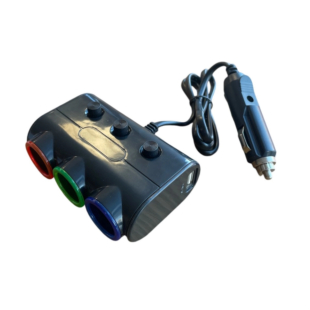 Разклонителят има 3 гнезда за автомобилна запалка.