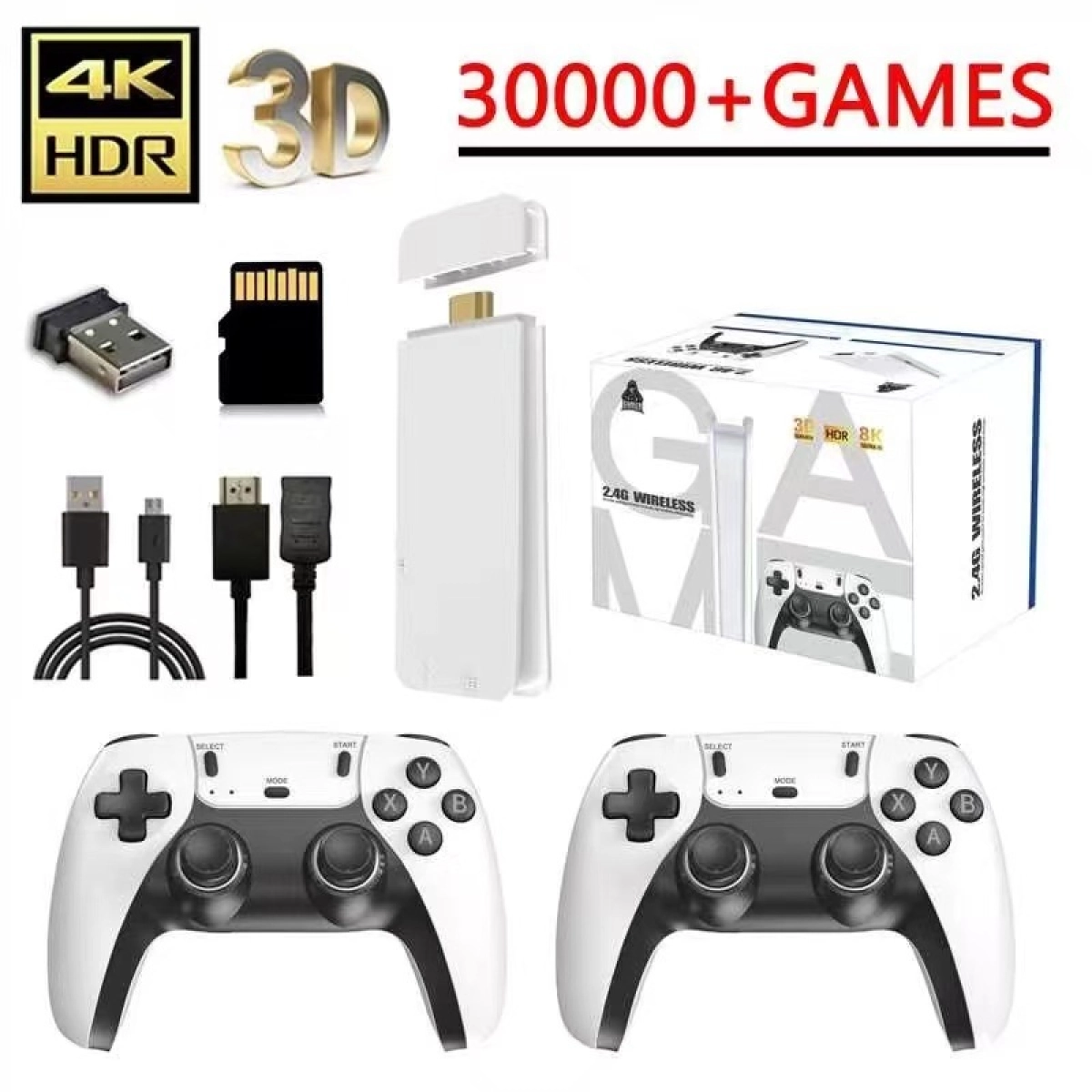 Открийте магията на класическите видеоигри с ретро гейминг конзолата Game Stick M15 4K, която съчетава носталгия и модерна технология за изключително игрово преживяване. Тази компактна и лесна за използване конзола предлага огромна колекция от над 30 000 предварително инсталирани игри и включва два безжични джойстика, които ви дават пълна свобода на движение.