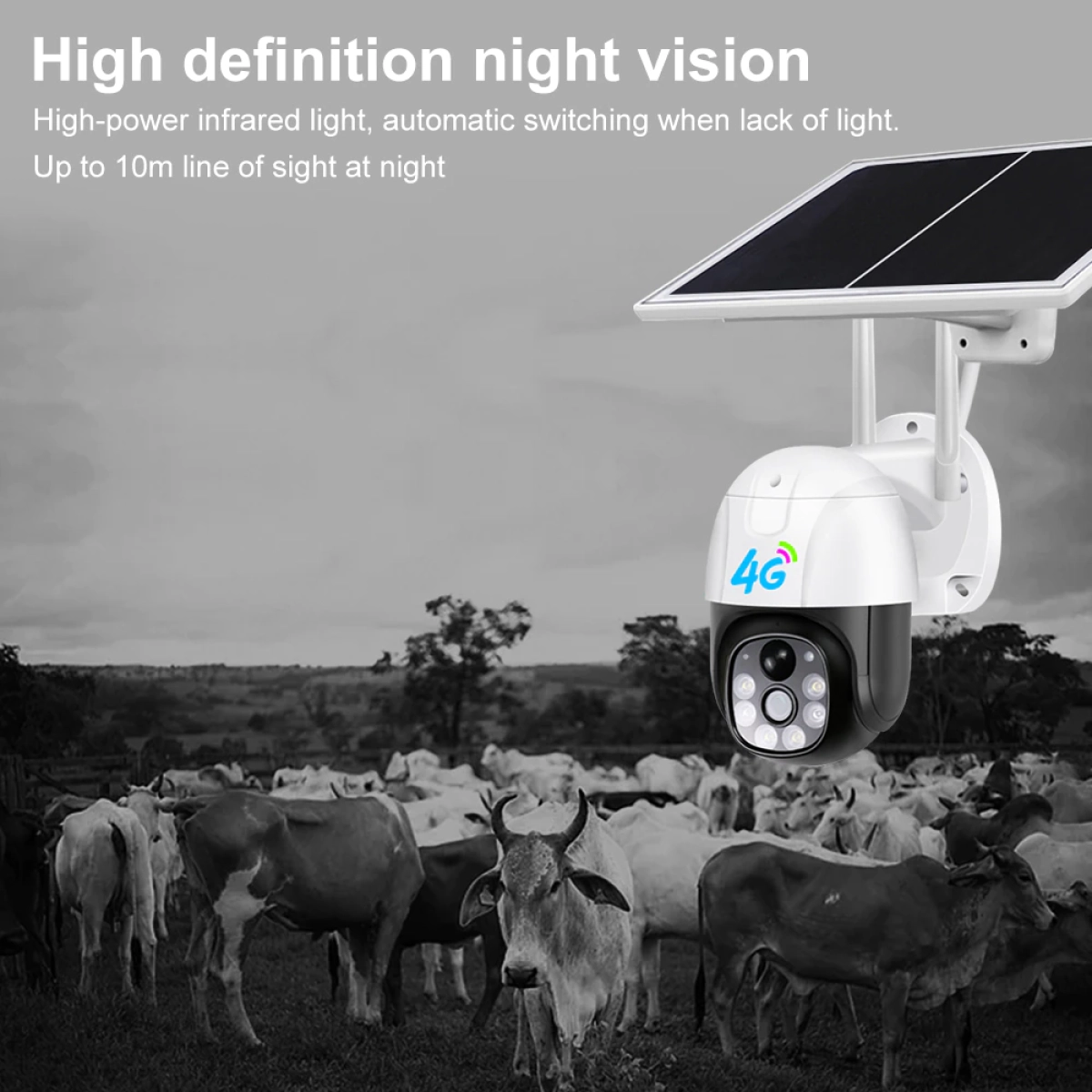 Камерата се захранва директно от слънчевата светлина чрез соларен панел с вградени батерии, което я прави подходяща за места без електричество.