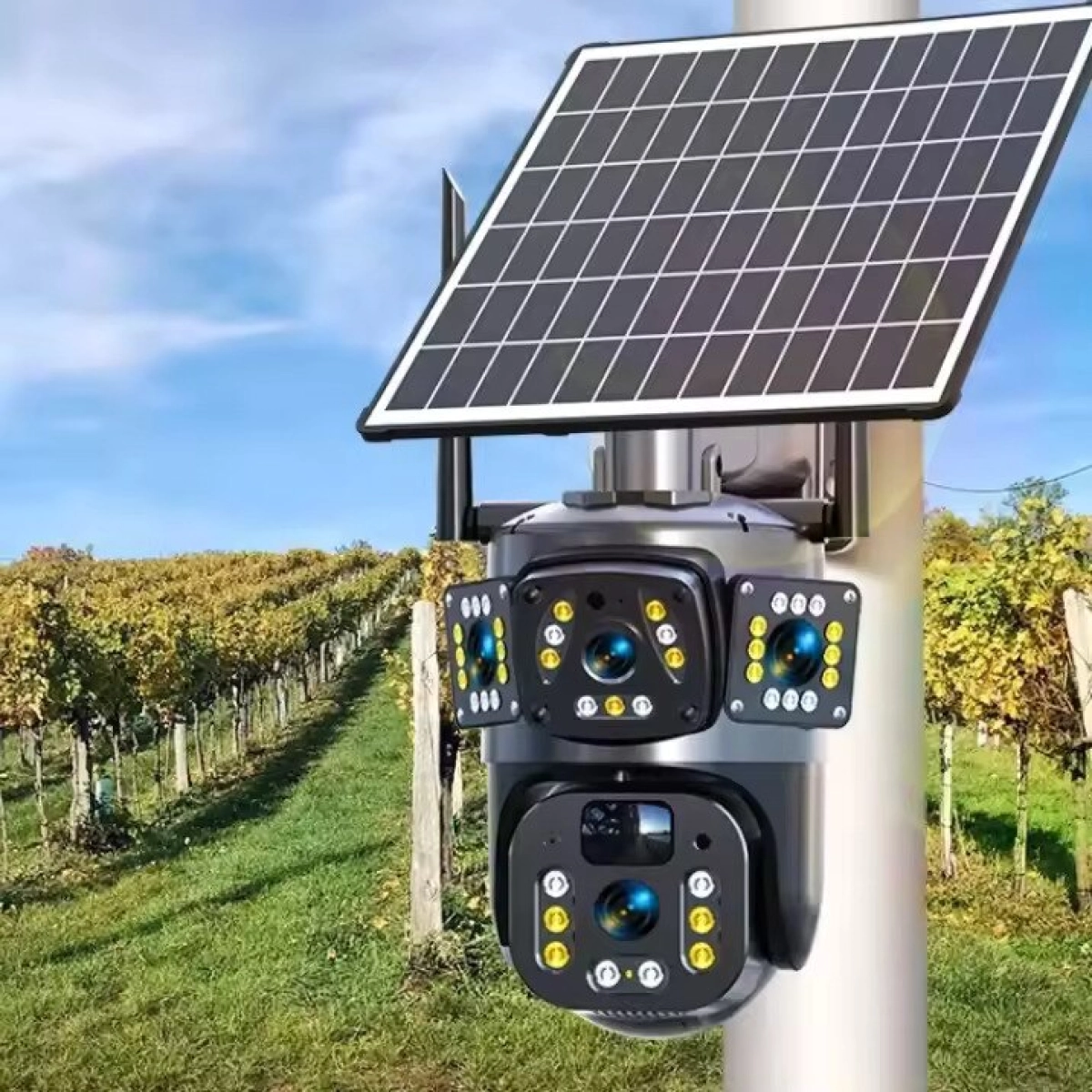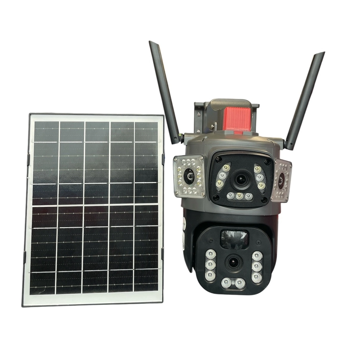 Соларната камера LYLU с 4 сензора и SIM карта е иновативно устройство за видеонаблюдение на открито, което комбинира автономно захранване със соларен панел и 4G свързаност. Тази камера позволява лесен и надежден контрол на сигурността в домове, вили, гаражи и други обекти, без необходимост от кабелна интернет връзка или електрическа мрежа.