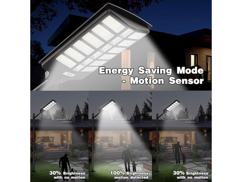 Тази соларна LED лампа LYLU 1800W предлага максимално осветление с 936 COB диода и висока яркост. Проектирана за екстремни метеорологични условия, тя е идеално решение за осветяване на улици, дворове, паркинги и индустриални обекти, осигурявайки ефективност и енергийна икономия.Основни характеристики:✔ Брой диоди: 936 – ултраярко осветление с 6500K светлина (студена бяла, без жълт оттенък). ✔ COB мощност: 1800W – мощно осветление за големи пространства. ✔ Широкоъгълно осветление: 220° двупосочно разпределение за по-голям обхват. ✔ Брой секции: 30 – равномерно осветление без тъмни зони. ✔ Водоустойчивост: IP65 – издържлива на дъжд и сняг и на екстремни климатични условия. ✔ Температурен диапазон: от -20°C до +65°C – подходяща за всякакъв климат. ✔ Издръжлив материал: PVC / ABS – устойчив на удари и корозия. ✔ Размери: 74.93 x 35 x 7.5 см – големи размери за по-добро осветление на по-големи площи.Интелигентни режими на работа:Режим на сензор за движение – лампата се включва на 100% яркост при засечено движение и намалява до 30% след 15 секунди.Режим "От здрач до зори" – автоматично включване при здрач и автоматично изключване при изгрев.Режим на синхронизация – настройка на време чрез дистанционно управление: 2 / 3 / 5 / 6 / 8 часа, както и регулиране на яркостта от 25% до 100%.Защо да изберете LYLU 1800W?✔ Работи изцяло със слънчева енергия – без нужда от електрическо захранване. ✔ Подходяща за големи пространства – идеална за улици, паркинги, строителни обекти и открити площи. ✔ Лесен монтаж и поддръжка – без нужда от допълнителни кабели.Със слънчева енергия и иновации, осигурете си ефективно и мощно осветление!