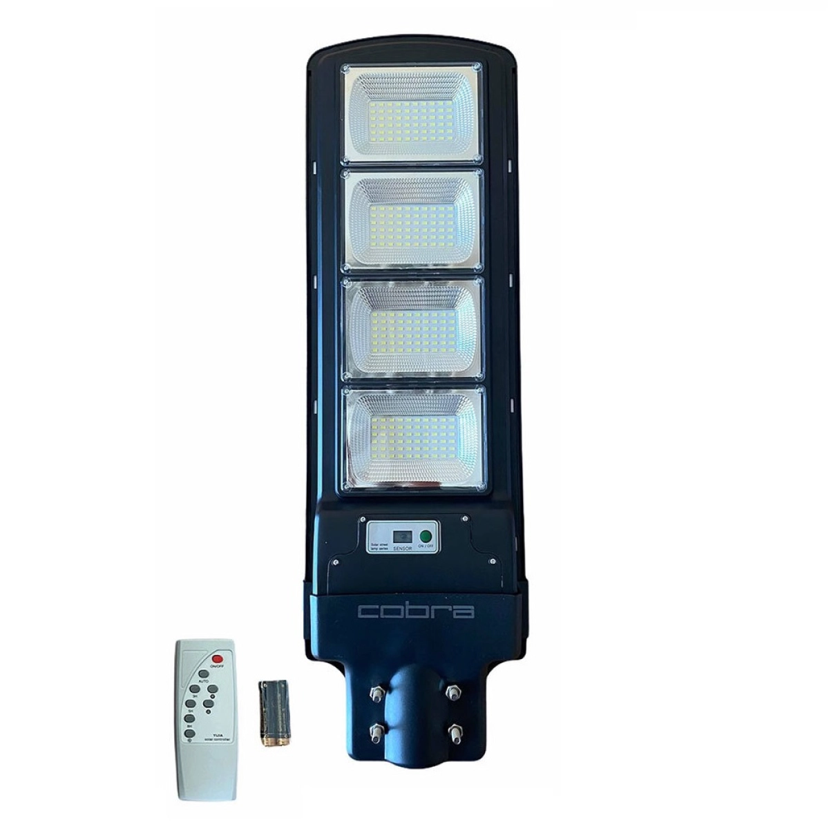 Соларната улична лампа JMK COBRA 500W е иновативно решение за автономно осветление на външни пространства. Тази мощна соларна LED лампа съчетава високоефективен слънчев панел, интелигентен сензор за движение и дълготрайна литиева батерия, осигурявайки надеждно и икономично осветление без необходимост от външно захранване.