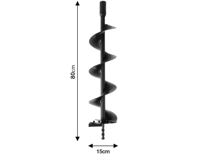 Свредло за моторен бензинов свредел с размери 150х800мм – перфектно за пробиване на дълбоки дупки в различни типове почва. Идеално за градинарство, строителство и озеленяване. Издържливо и ефективно, това свредло е незаменимо за вашите проекти!
