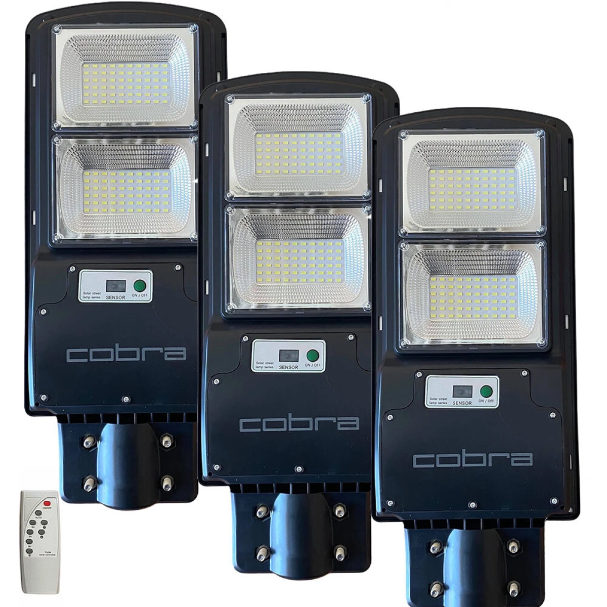 Комплект от три соларни лампи JMK COBRA с мощност 250W. Отлично решение за външно LED осветление. Поръчай сега!