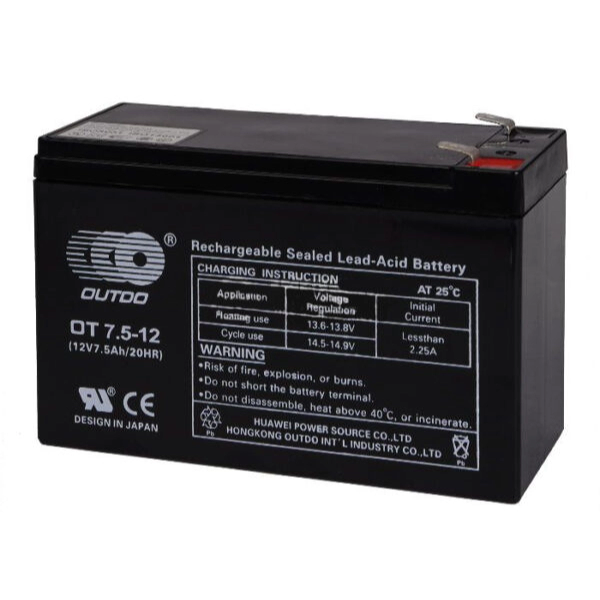 Тягов акумулатор OT7.5-12 UPS 12V 7.5Ah е специализиран оловно-киселинен акумулатор, предназначен за дълготрайна работа и стабилно захранване. Този модел е идеален избор за UPS системи, аварийно осветление и различни индустриални приложения, където се изисква надеждна и продължителна енергия.