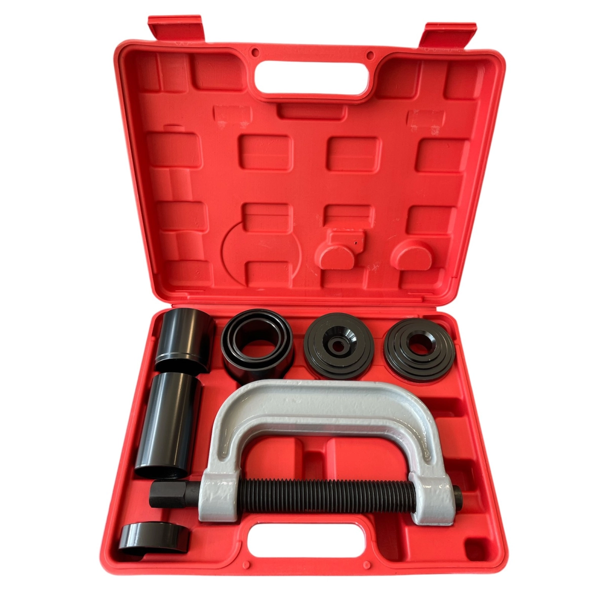 Този комплект скоби за монтаж и демонтаж е незаменим инструмент при ремонт и поддръжка на автомобилни лагери, тампони и шарнири. Подходящ е за бързо и безпроблемно сваляне и поставяне на компоненти в ходовата част на автомобила. Използва се както в професионални автосервизи, така и при домашни ремонти, осигурявайки ефективност и прецизност дори при труднодостъпни места.