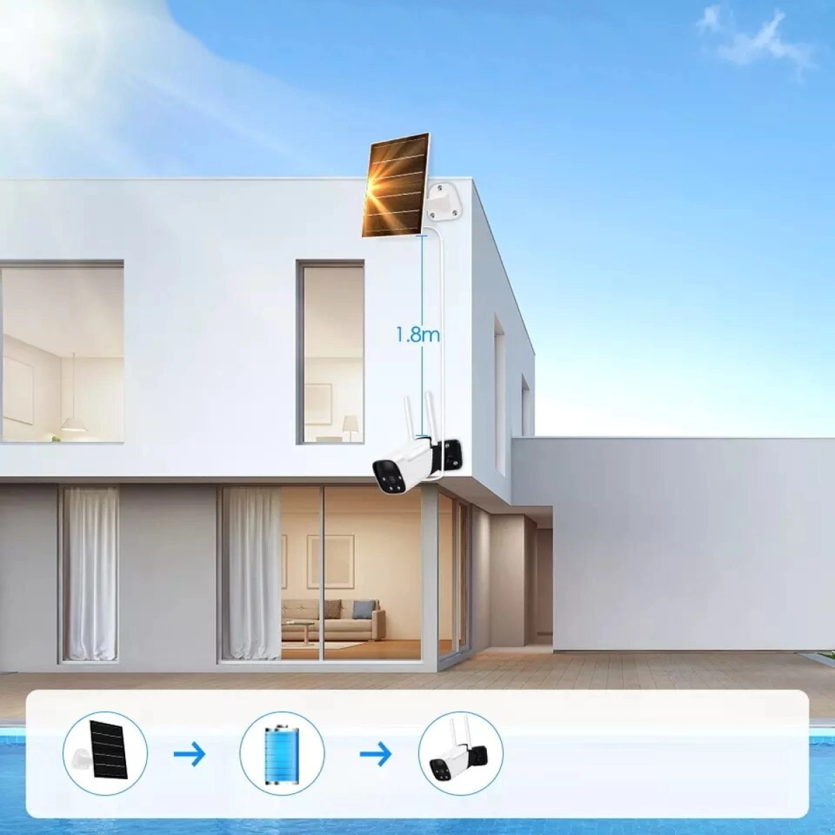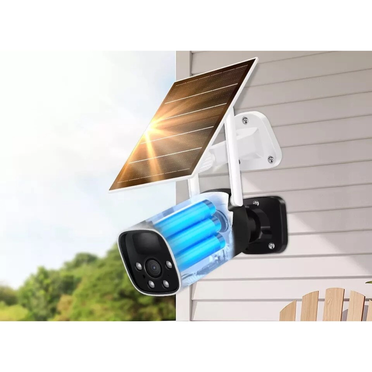 Тази външна WiFi камера с батерия и соларен панел е перфектният избор за осигуряване на сигурност и контрол върху външните площи на жилища, офиси, складове или търговски обекти. Благодарение на безжичната свързаност и автономното захранване, камерата може да бъде инсталирана на места без достъп до електричество, като ефективно покрива всякакви лица и ситуации на наблюдение.