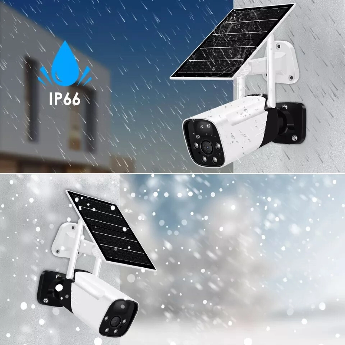 - Водоустойчива конструкция IP66 – камерата е проектирана да издържа на дъжд, сняг и прах, което я прави подходяща за работа на открито през цялата година.