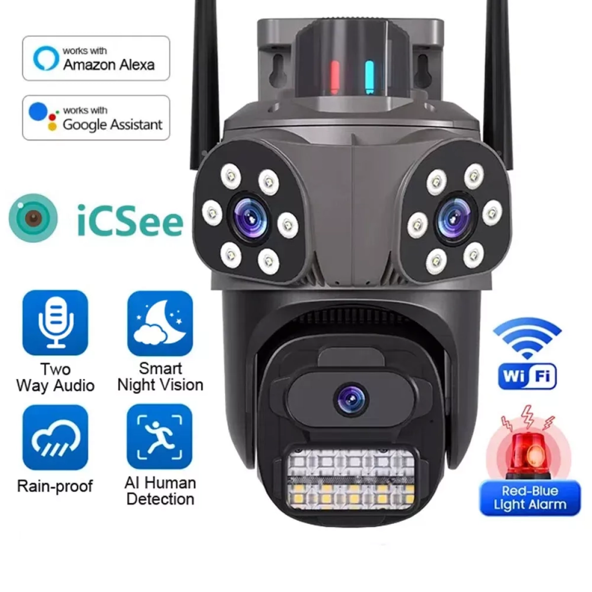 Външна WiFi камера с три обектива 10MP и интелигентен AI контрол ICSee