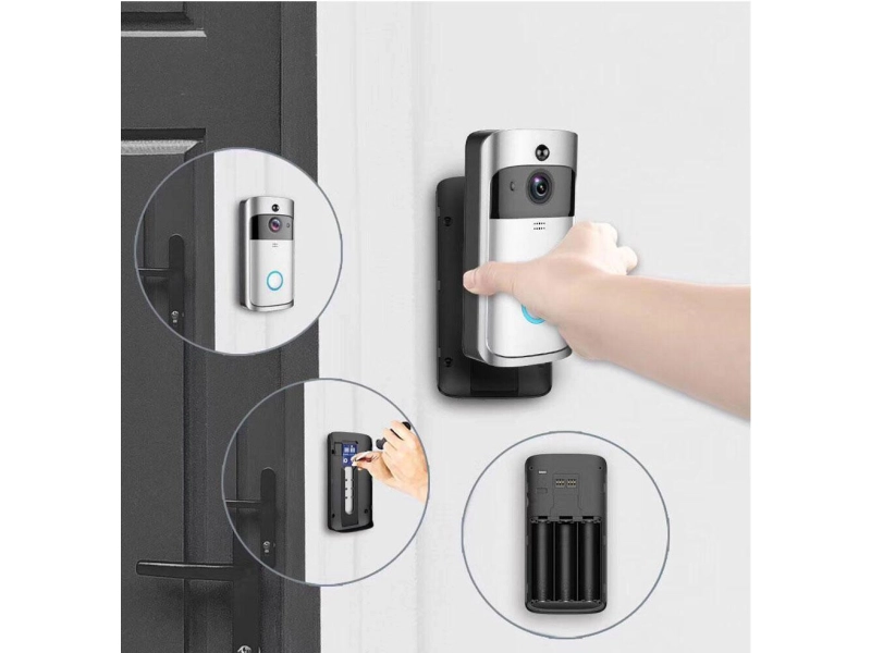 С включен PIR датчик за движение: когато някой се движи около вратата, звънецът незабавно ви предупреждава с известие на мобилния ви телефон Висококачествен двупосочен разговор с външния човек, с функция шумопотискане Видео звънецът разполага с три акумулаторни батерии със спецификация 18650. Те се зареждат с USB кабел, който може да включите в контакта Над милион HD пиксели съчетани с широкоъгълен обектив от 166 градуса. Поддържа функция за бързо събуждане на мобилния телефон в рамките на 1 секунда. 2.4G Wi-Fi връзка Дневен и нощен режим с автоматично превключване, независимо дали e ден или нощ, изображението е ясно видимо, за вашата безопасност и семейна сигурност Монтаж: Монтиране на стена Размер на сензора (инч): 1/4 инча Звънец: Да Метод на свързване: Безжичен Водоустойчивост: Да Вид на щепсела: ЕС щепсел Детектор за движение: Да Модел: WiFi видео звънец с камера и интерком връзка със смартфон Мощност: Консумация на енергия в режим на готовност 400uA Технология: Цифрова Материал: ABS Интерфейс за IP камера: Не Комуникационен интерфейс: Безжичен Тип камера: CMOS Размери: 144 * 74 * 32 мм (5.6 * 2.9 * 1.3 инча) Ъгъл на видимост (°): 160 градуса Резолюция: 720P Мощност: 18-24V AC захранване. Захранване: 3 броя батерии със спецификация 18650 (Включени в комплекта!). Активиране: Натискане на бутона / Чрез PIR датчика за движение/ Чрез мобилното приложение