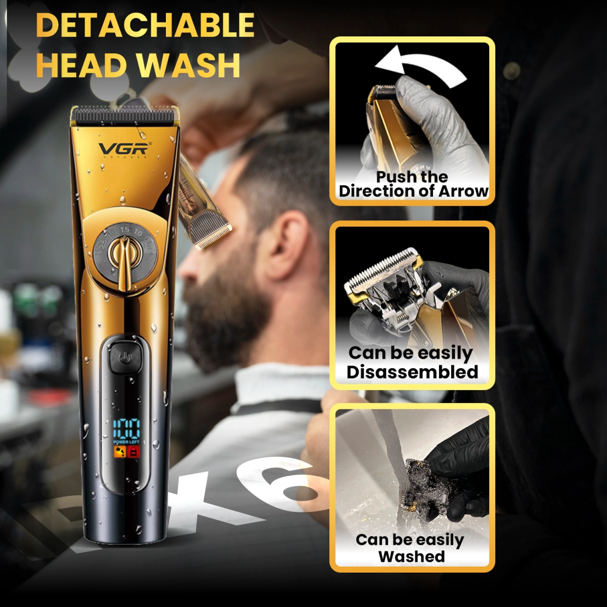 - 1 х машинка за подстригване VGR 663 с елегантен златисто-черен дизайн.