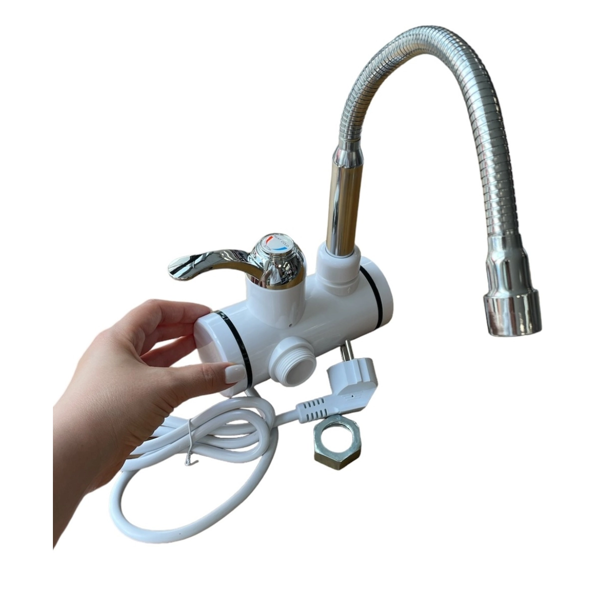 Мощен водонагревател за стенен монтаж с гъвкав чучур и 3000W мощност Представяме ви водонагревател за стена с мощност 3000W, предназначен за бързо и ефективно затопляне на вода в дома или офиса. Този уред комбинира иновативен дизайн с практичност, предлагайки удобство и надеждност при използване в кухнята, банята или работилницата. С гъвкавия си чучур и лесен монтаж на стена, той осигурява незабавно гореща вода, спестявайки време и енергия. Основни характеристики Мощност 3000W за бързо нагряване на водата без изчакване и загуби по тръбите. Гъвкав чучур, който позволява лесно насочване на водата там, където е необходима. Универсален стенен монтаж, подходящ за различни помещения – кухня, баня, гараж или вила. Защита от прегряване и изгаряне, гарантираща безопасна експлоатация дори при продължителна употреба. IPX4 сертифицирана защита срещу пръски вода, което го прави надежден дори в мокри среди. Контрол на температурата чрез дисплей с индикация, позволяващ лесно регулиране и наблюдение. Капацитет на водния поток от 1.5 до 2 литра в минута, осигуряващ достатъчно количество топла вода за ежедневни нужди. Работно налягане: от 0.04 до 0.6 MPa, което го прави съвместим с повечето домашни водопроводи. Предимства на водонагревателя с гъвкав чучур Енергийна ефективност – Загрявате само необходимото количество вода, което намалява разходите за електроенергия и прави уреда икономичен. Компактен и стилен дизайн, който се вписва хармонично във всяко помещение, без да заема излишно пространство. Лесен монтаж и поддръжка, подходящ за монтаж както в нови, така и в съществуващи инсталации. Дълъг експлоатационен живот благодарение на висококачествените материали – комбинация от устойчива пластмаса и метал. Гъвкавост при използване – подходящ за различни приложения като кухненски мивки, бани или работни помещения. Какво ще намерите в комплекта Водонагревател с ефективен нагревателен елемент и 1 метър захранващ кабел за удобство при инсталация. Гъвкав чучур, който осигурява лесно и удобно насочване на горещата вода. Подробно упътване на български език за бърз и правилен монтаж и експлоатация. Опаковка, гарантираща безопасен транспорт и защита на продукта при доставка. Изберете този водонагревател за стена с мощност 3000W и гъвкав чучур, ако търсите надеждно, икономично и бързо решение за топла вода във вашия дом или работно пространство. Поръчайте сега и се насладете на комфорт, сигурност и стилен дизайн на изключително достъпна цена!