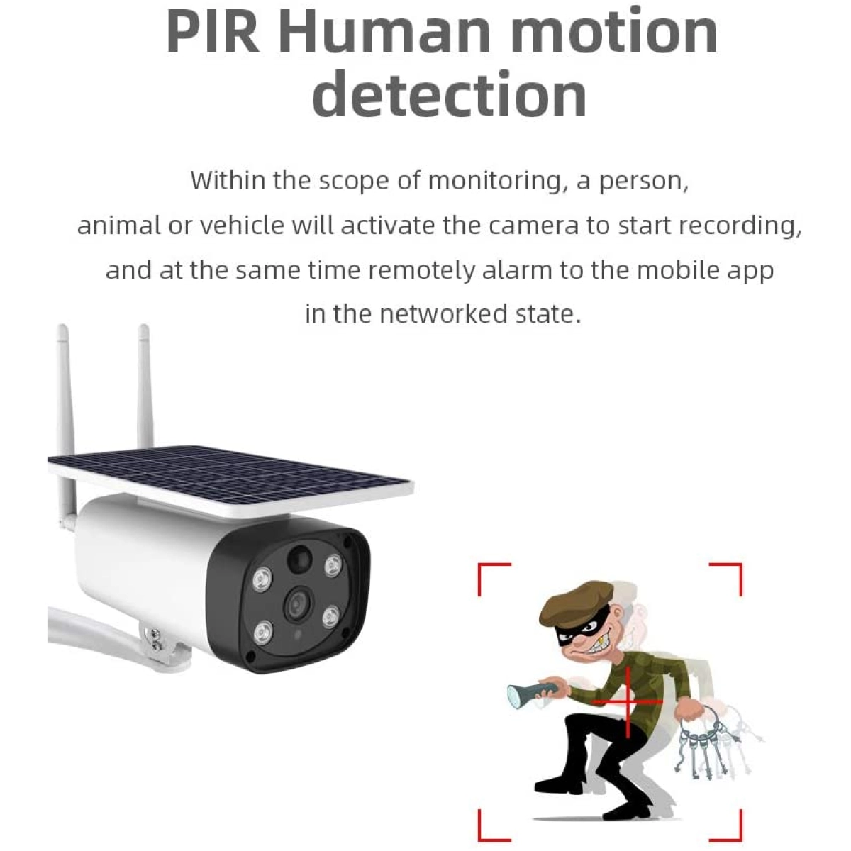 - Интелигентен PIR сензор за движение с 120° ъгъл на засичане, който минимизира фалшивите аларми