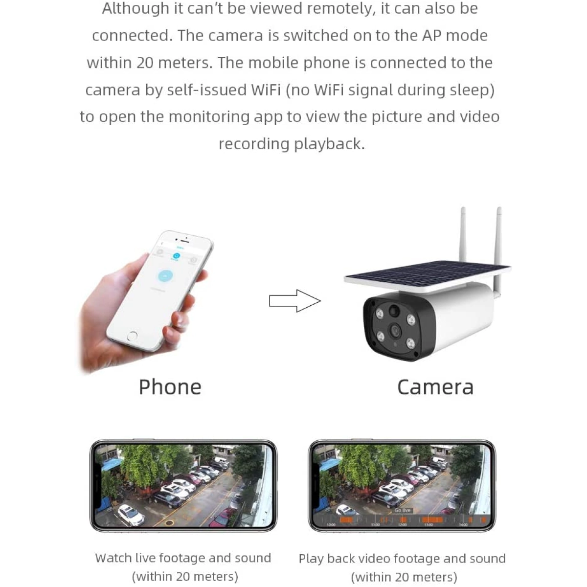 Тази водоустойчива соларна камера е идеална за наблюдение на дворове, входове, паркинги и други открити пространства. Благодарение на соларната си батерия и ниска консумация, камерата може да работи автономно без необходимост от често презареждане. Подходяща е както за частни домове, така и за бизнес обекти, които изискват надеждна охрана през деня и нощта.