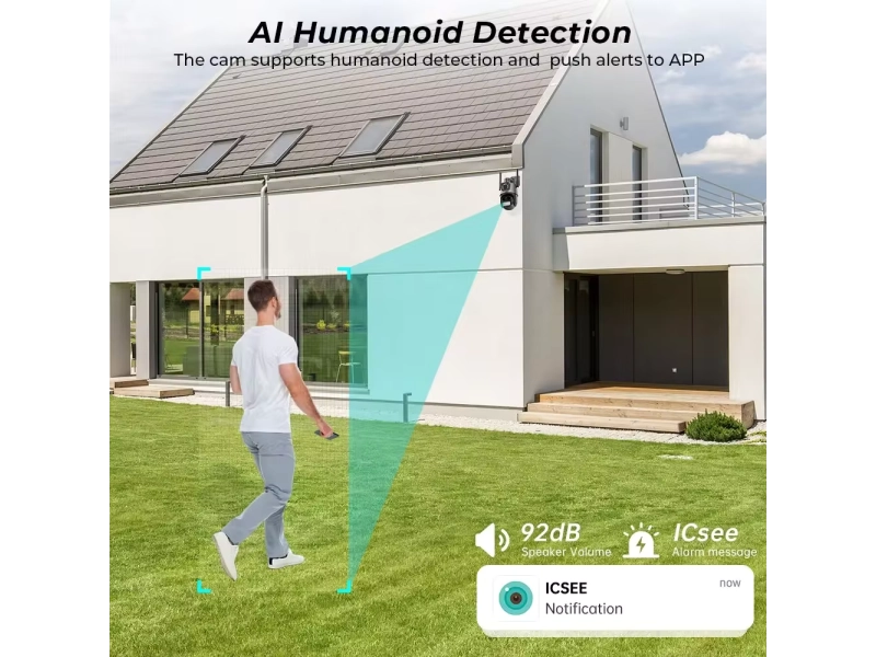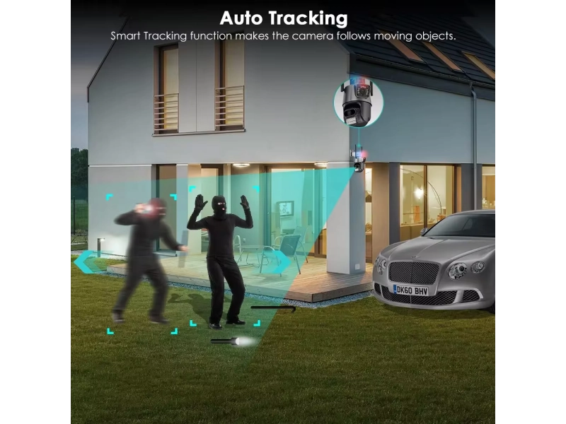 Осигурете защита за дома или бизнеса си с 8MP PTZ WiFi камера, която разполага с двойни обективи, AI разпознаване на хора и интелигентно нощно виждане.