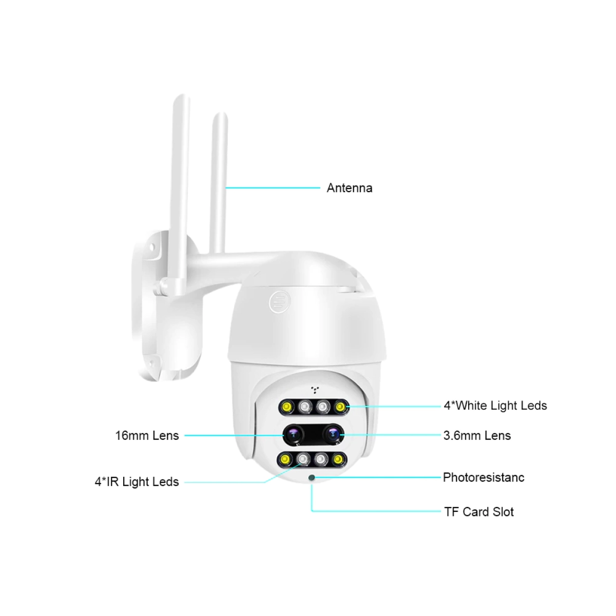 Двойната външна камера с оптичен зуум и PTZ функция е високотехнологично решение за сигурност, предназначено за външно видеонаблюдение. Съчетава водоустойчив корпус с интелигентни функции за засичане на движение и управление чрез смартфон, което я прави идеален избор за защита на дома и бизнеса.